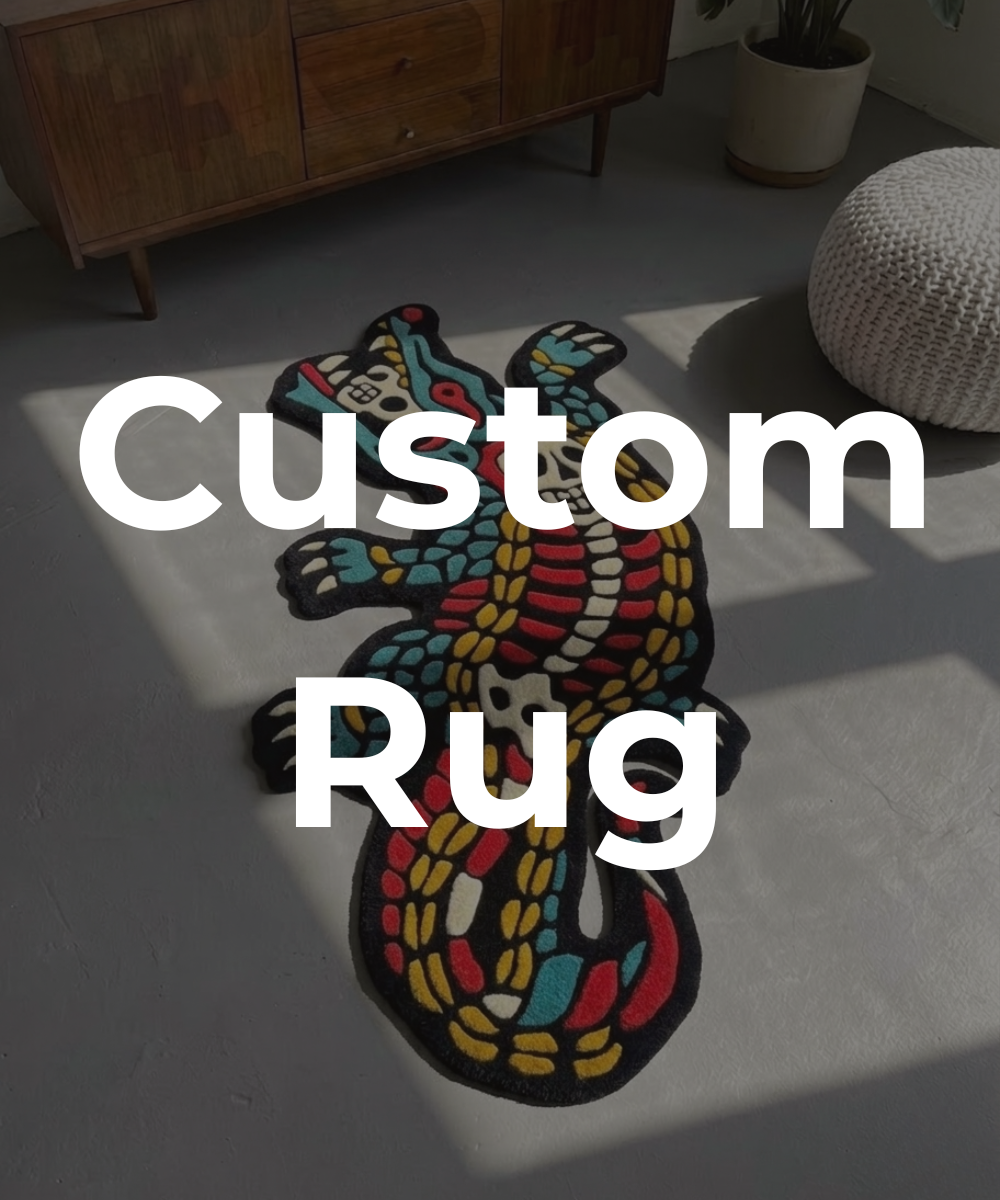 Turn your tattoo design into a custom hand-tufted rug, crafted to reflect your style, story, and space. From bold flash sheet to personal artwork, every piece is made with precision, texture, and true tattoo-inspired detail—so your ink lives beyond skin.