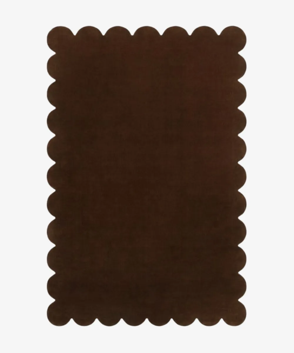 Cocoa Earth scalloped rug captured the warmth of natural wood and soil, offering a rich foundation for cozy, grounded interiors. The scalloped outline adds softness to the bold shade, making it suitable for rustic, earthy, or modern homes seeking depth and comfort.