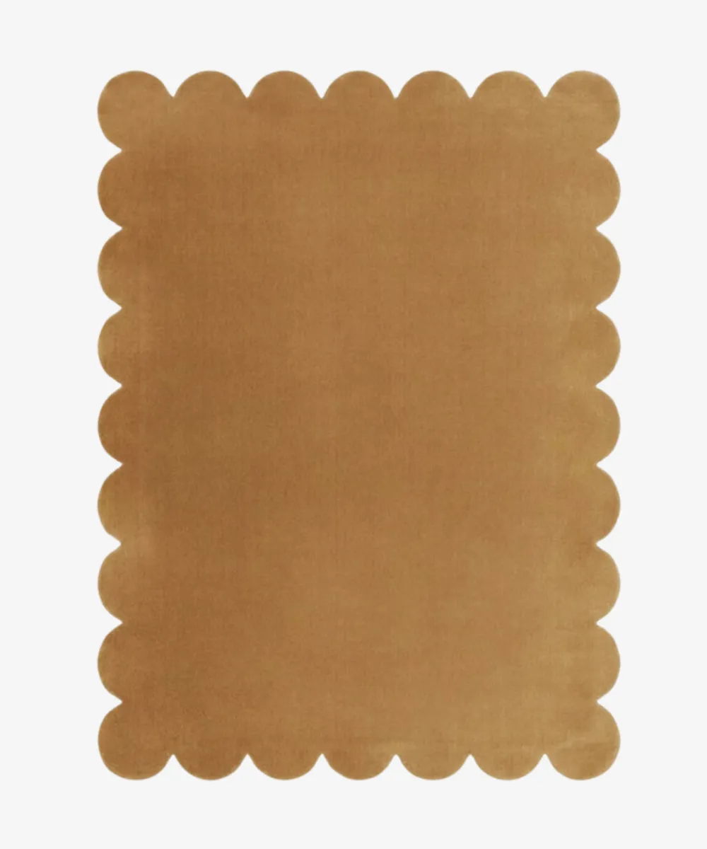 Desert Dune rug reflects the subtle curves and warm tones of natural stone. Its rounded scalloped edges bring gentle movement into minimalist or Japandi spaces, creating a clean yet inviting base. The warm beige shade helps open up rooms while keeping them grounded and serene.