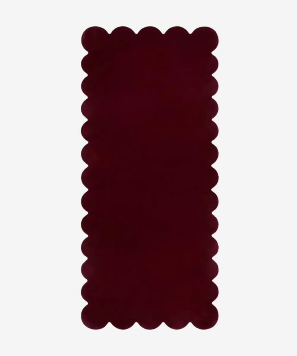 Ruby Ember rug draws inspiration from deep berry shades and twilight’s glow. Its warm red plum color and gracefully scalloped edges add a bold touch to hallways and extended corridors. This bold rug offers dramatic flair while keeping a cozy, expressive, and contemporary vibe, which makes it perfect for stylish entryways, modern homes, and inviting statement interiors.