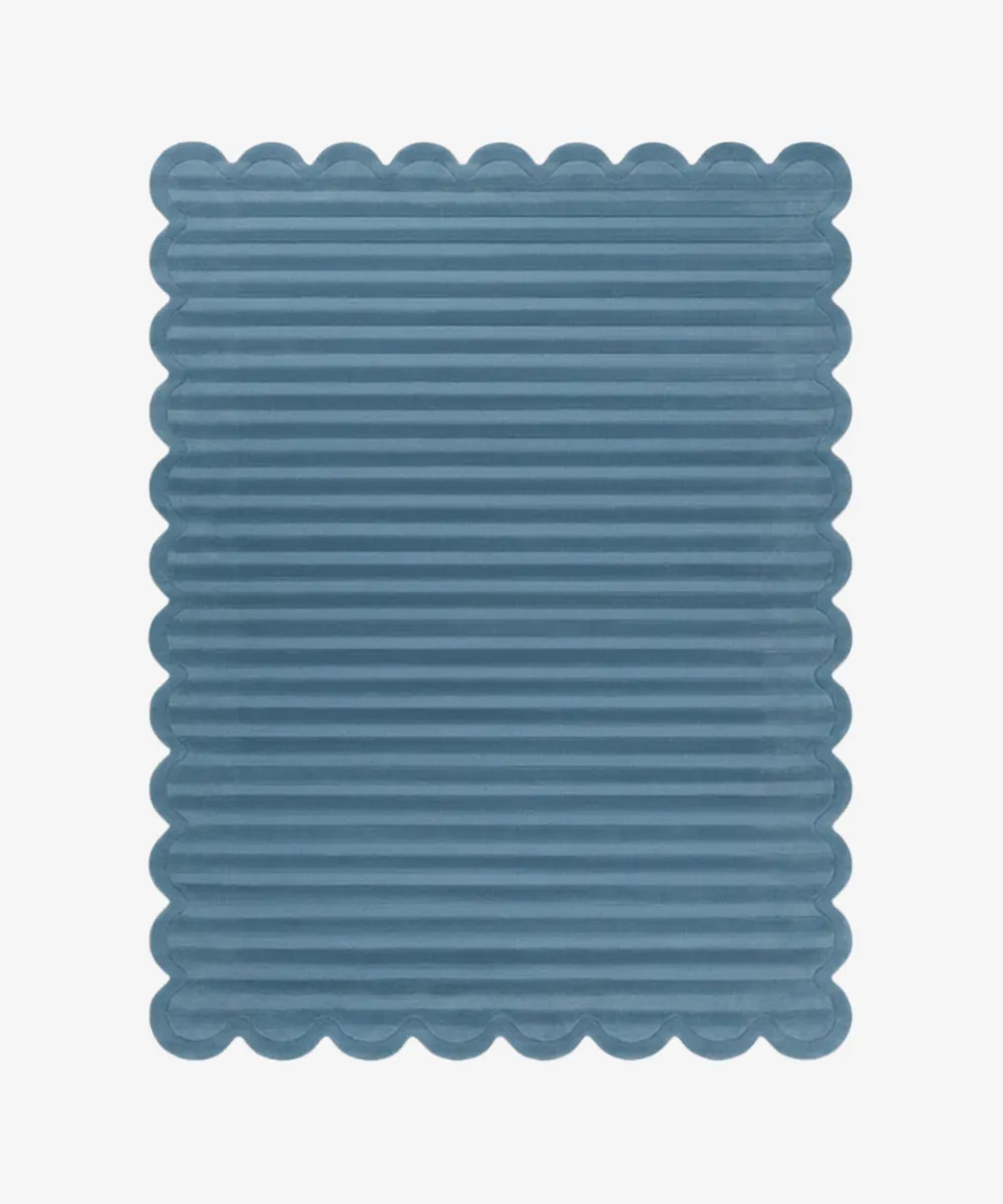 Hand-tufted from high-quality materials, this scalloped rug offers lasting durability and a comfortable feel underfoot. The curved edges highlight the sense of motion, giving the design an organic finish. Ideal for bedrooms, reading corners, or relaxed living spaces, Still Tides gently anchors the room. Pair it with clean-lined furniture, soft textiles, or natural materials to keep its calm presence. Designed for modern homes, this blue rug combines subtle movement with functional comfort.