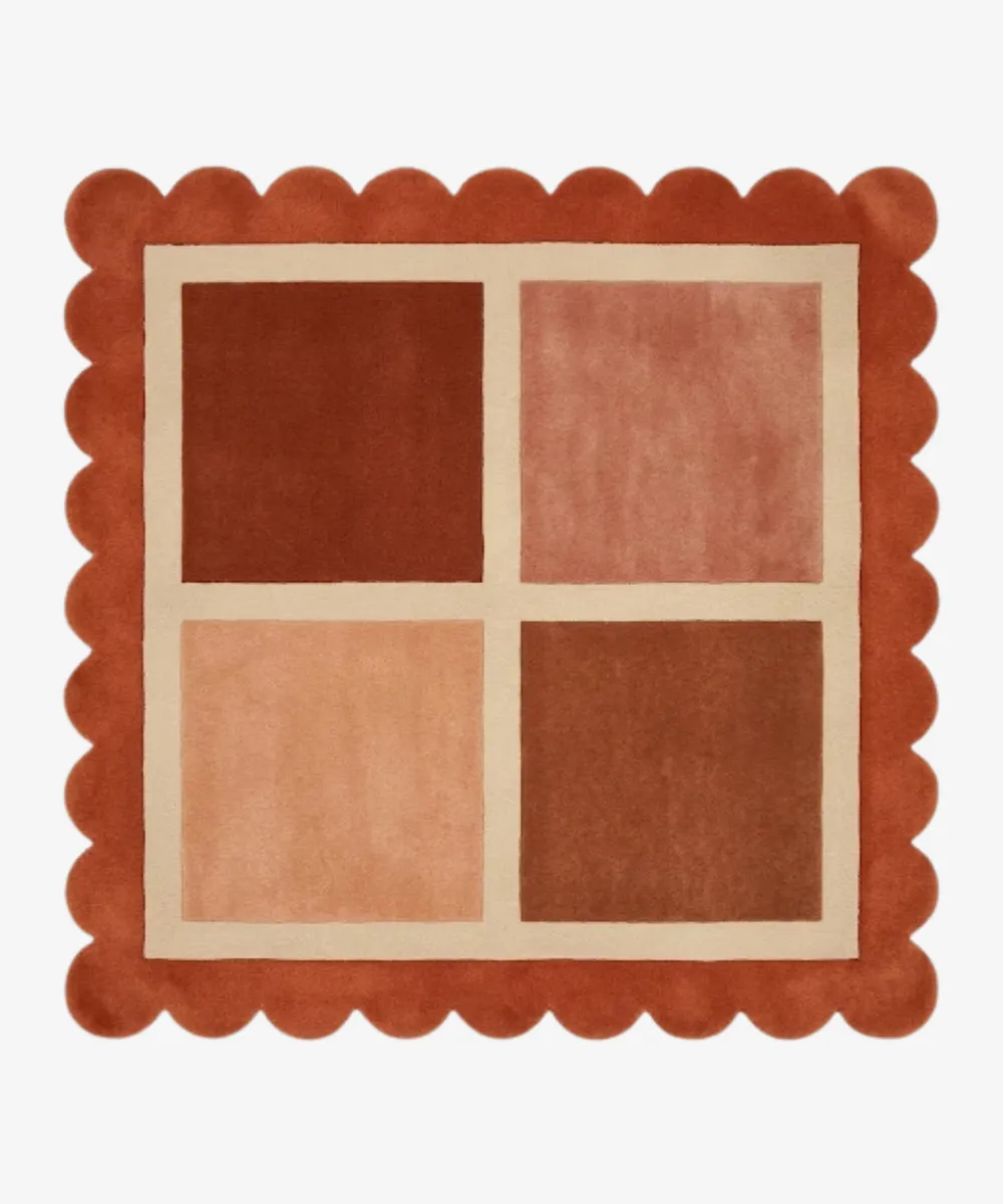 This statement rug works beautifully in living rooms, lounge areas, and stylish bedrooms where bold tones can anchor the space. Pair it with wooden furniture, terracotta ceramics, textured cushions, and warm lighting to enhance its earthy palette. It also works wonderfully under coffee tables or open seating areas, where this designer piece can turn into a center attraction point. Custom sizing is available upon request. Discover more Geometric rugs from Scalloped Rugs exclusive collection.